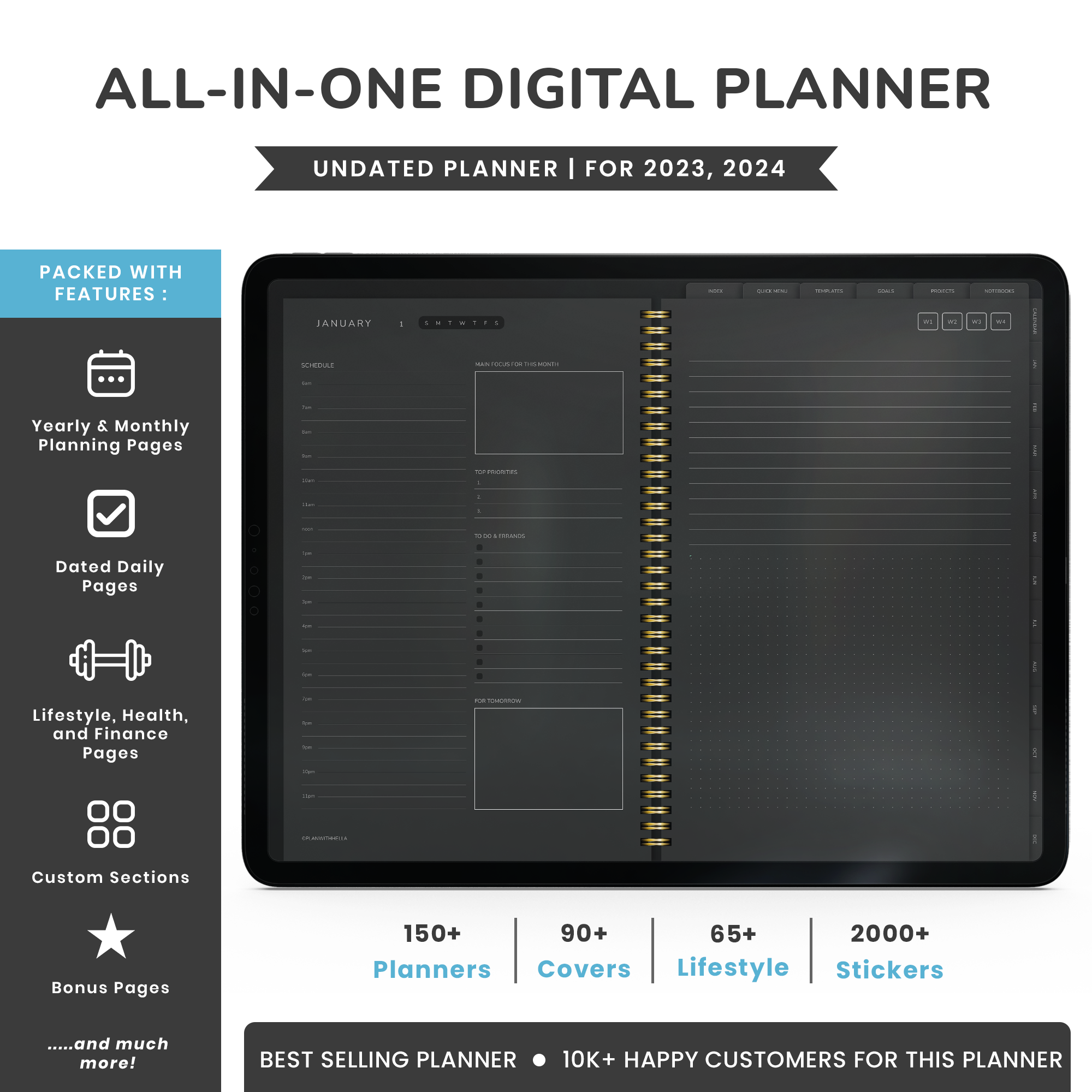 Dark Mode Digital Planner, Goodnotes Planner, iPad Planner